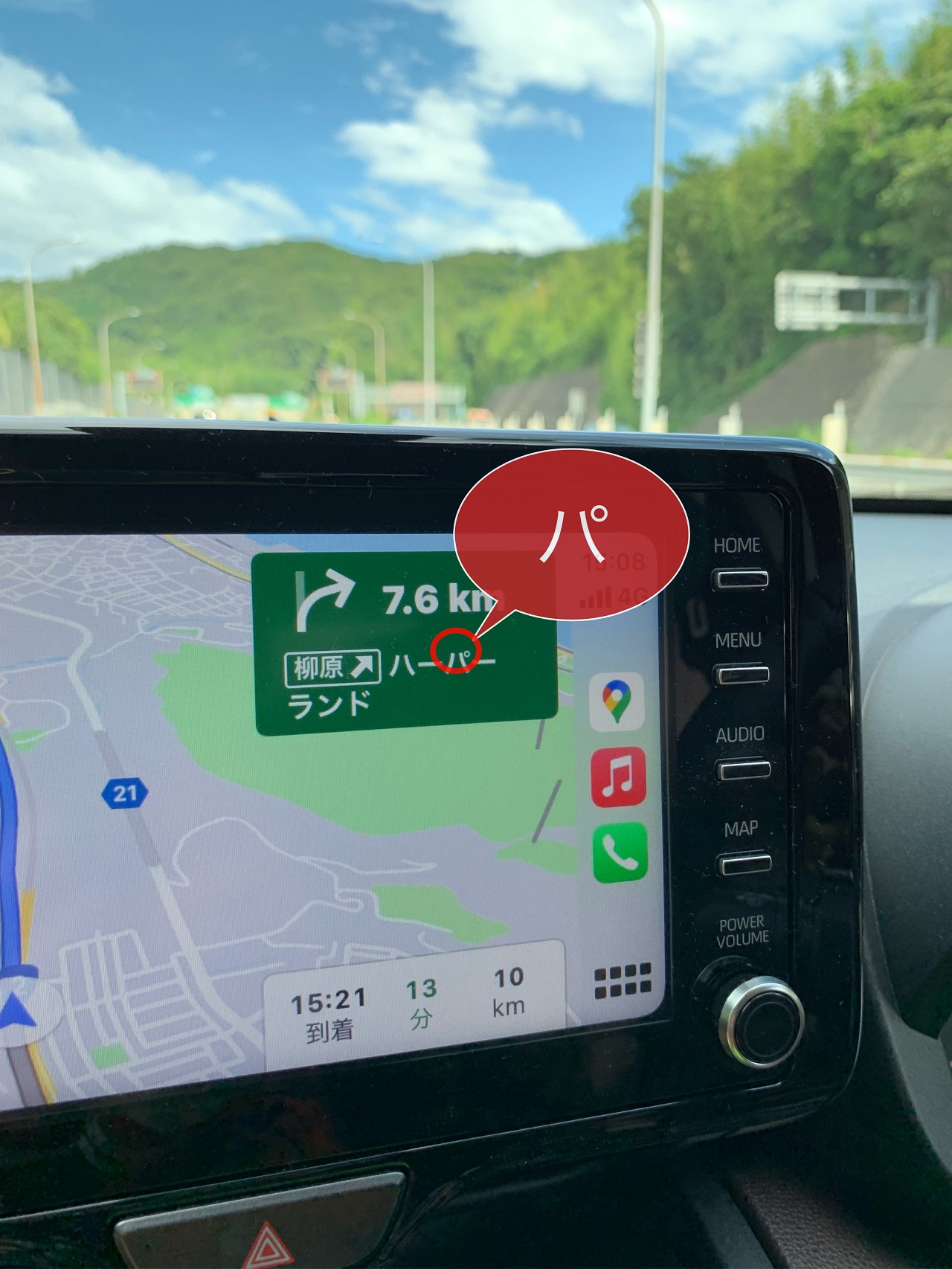 道中、ナビ表示の【ハーパーランド】にツボる 🤣
